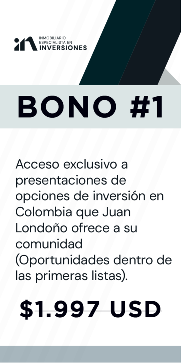 Inversionista en bienes raíces con más de 16 años de experiencia, mentor y líder del Club de Inversionistas más grande del país, con inversiones por más de $39 millones de dólares en Colombia y en el exterior en 2023, afiliado a la Lonja de Propiedad Raíz de Medellín y a Camacol.
